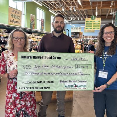 In June our customers donated $2,396.39 to the Iron Range Off-Road Cyclists! IROC is the organization responsible for the local mountain bike trails including Lookout Mountain in Virginia, Redhead Mountain Bike Park in Chisholm and Maple Hill trails in Hibbing. These trails are used by residents and tourists of all ages quite extensively for both…